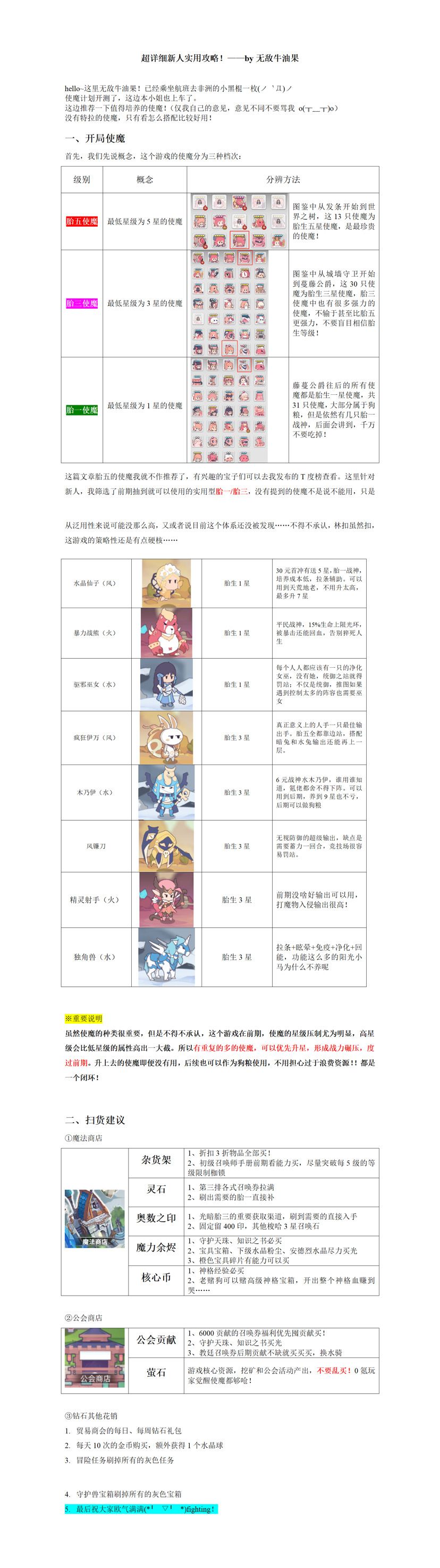 本人光子服4区,玩了大概2个月,本身游戏比较小众,有些攻略也比较老了,出一个最新的攻略,欢迎大家来讨论,战力图镇楼,轻松越战2倍多。 1、使魔选择(1.11更新)。 前期:有什么用什么,尤其是前7天,优先把使魔平均向上升,5星到6星提升巨大。可以参考热度榜,基本上热门的都在上面,排名靠后的要不就是获取比较难,要不就是有点瑕疵,反正整体差不多。 前期问的比较多的配队,基本就是选群体输出,比如火龙、火
