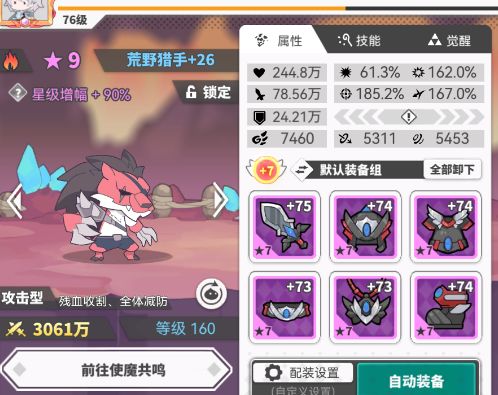 哈喽大家好,我是你们的数字哥,自从上次写攻略到现在,已经长达1个多月咯。 好久不见甚是想念!所以这次我们就不闲聊了,直接进入主题:新使魔的测试。 因为不可抗力的因素(400抽+50预言未出新胎五) 我决定测试一下新的胎三使魔:荒野猎手。而我记得有人测试了风系,我就直接火系搞起,试试强度和使用场合。 一个使魔是否能够上阵,取决于你在看到他时对他的定位。而每个使魔总分其实是差不多的,或许因为是胎五