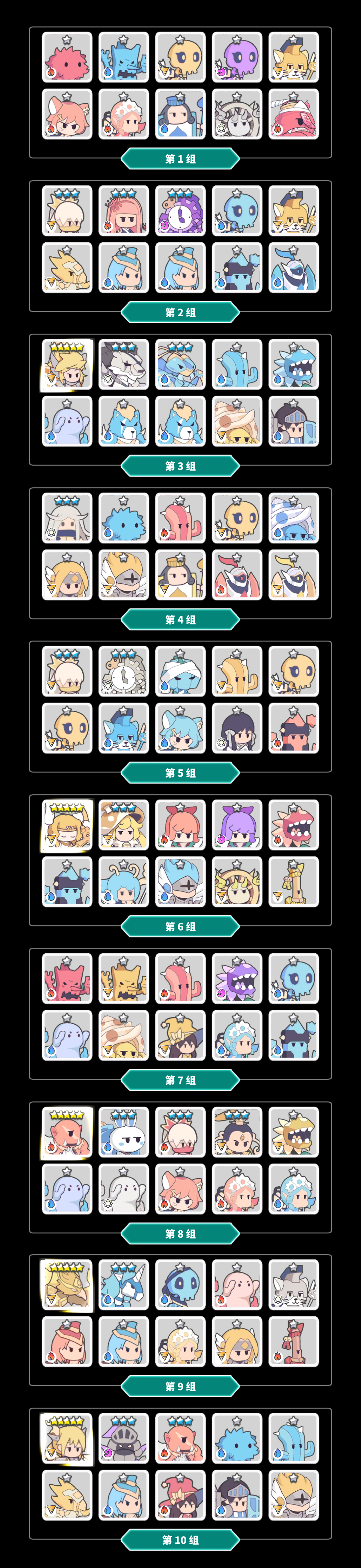水塔: 浅谈一下不共鸣1级无星级要求,可用的水系辅助使魔,因为共鸣位有限,所以纯纯挂件。顺序无先后。 (首先说明,以下这些卡都是不需要刻意留的,如果手头正好有1-4星还没有喂掉的狗粮卡,可以挂着推水塔) 一、拉条类: ①水骷髅射手,7385的初速,三技能恢复群体1能,后排30%行动。可以配合水兔子先手炸弹。(强力一速拉条手,推荐5星) ②扑克守卫,7770初速,暴击单体恢复全体10%行动,1级无装