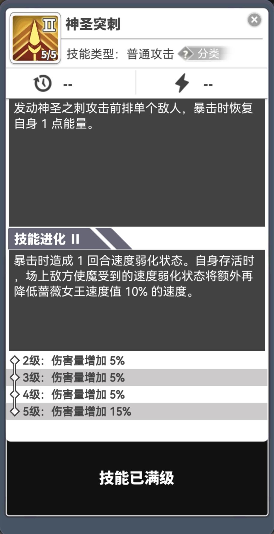 如果要说某个使魔在一场对局之中的成长,那最能极限成长的必是进化风蔷薇。谁让游戏中最珍贵的属性就是速度属性呢,能堆叠速度属性的风蔷薇成长到极限无疑就是最强的。 这游戏的技能描述很多不清不楚的,用了才知道怎么个事儿,所以先详解一下风蔷薇进化后的技能: 1、神圣突刺。 坏消息是目前只有风蔷薇自身戳出来的速度弱化才会额外降速,队友打出来的速度弱化效果不产生额外降速。这直接导致靠队友打群体速度弱化的阵容