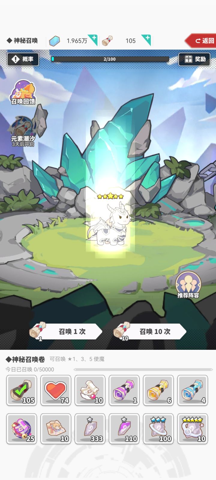 接着(八)继续聊。先说本次活动,建议抽传说10鞭炮,搏宝具和光暗星轨,积分换3阶宝具,视情换4阶10红球,基本换出宝具难度不大。建议最后一天看出货情况进行换取。再说推图,一队暗独眼,二队兔子,三队镰刀。按照逻辑说。先说三队镰刀,基本上就是光仙,风马,火轮子/水祭祀,暗猫,镰刀,水木乃伊,比较固定,少一个伤害都丢一大截。爬塔两队光仙可换火天使再增伤。二队兔子,也比较固定,火天使,水龙,三兔,