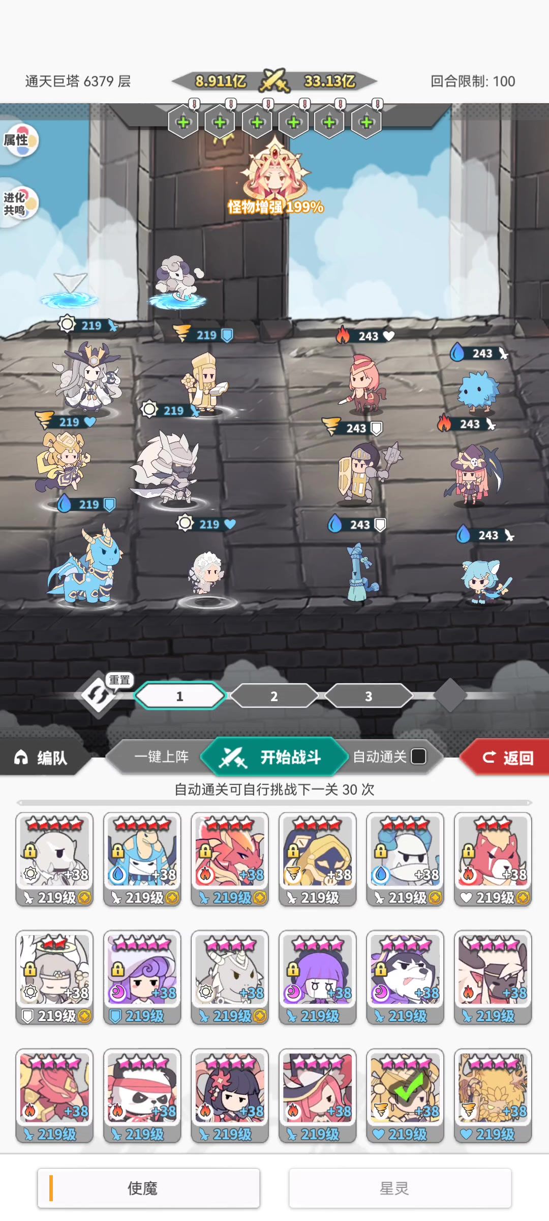光属性SR星灵圣光灵羊搭配光修罗,光修罗出手后,光羊给的能量会优先给低能量的修罗,而修罗3能量后立刻获得回合并掉8%生命,而光羊技能CD的情况,光修罗普攻也会直接消耗所有能量强化普攻,光羊也会根据同排使魔消耗的能量还回复生命值最少的使魔。光修罗普攻三次都只能触发一次技能宝具雷凌天华(就是一次,但是1能量的普攻真的就是能触发三次15%回复行动条直接拉满45%,这代码是这样写的啊?),这个搭配风妙音将