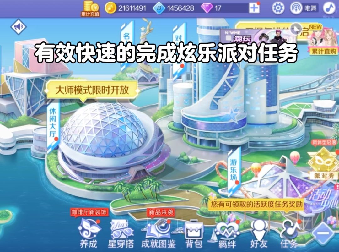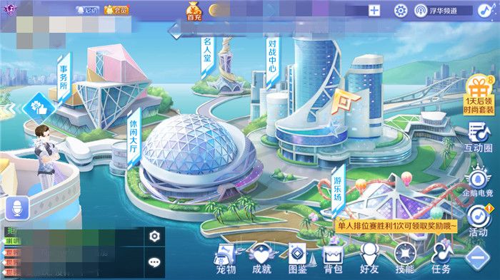 欢乐放松来跳舞 休闲大厅玩法多 在QQ炫舞手游中,想找一个跳舞的好地方,那就非“事务所”、“对战中心”、“休闲大厅”莫属了。在事务所中大家可以进行各个游戏模式的练习,在对战中心中可以找到厉害的玩家一决高下,在休闲大厅里可以休闲与放松。今天我们就来看一下,休闲大厅有哪些玩法吧! 在QQ炫舞手游主页面地图上,找到“休闲大厅”并点击进入,可以看到休闲大厅的现有游戏房间。点击右下角的快速进入,系统会随机将