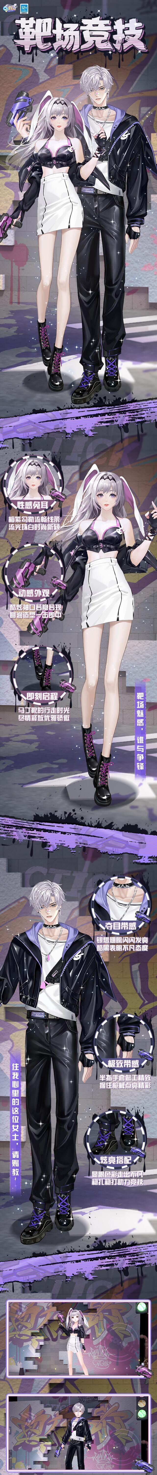 限定臻品全民领 和心爱的ta来一场竞技 看着ta飒爽的一面 时髦穿搭,超A装备 一举一动都格外迷人 炫酷伴侣 甜辣滋味 她一身飒爽的着装,兔子耳朵随着一举一动而摇摆,“发射爱心~”她俏皮说道。 他自信踱步,在靶场上自己可是百发百中的高手,谁与争锋? 心动时刻 男生在女生面前做出投降姿态,“兔子小姐,我认输”,而她恶作剧式开枪:“来接受我的心吧~” 他顺势倒下,试图逗弄她。女生以为他受伤,凑近来关心