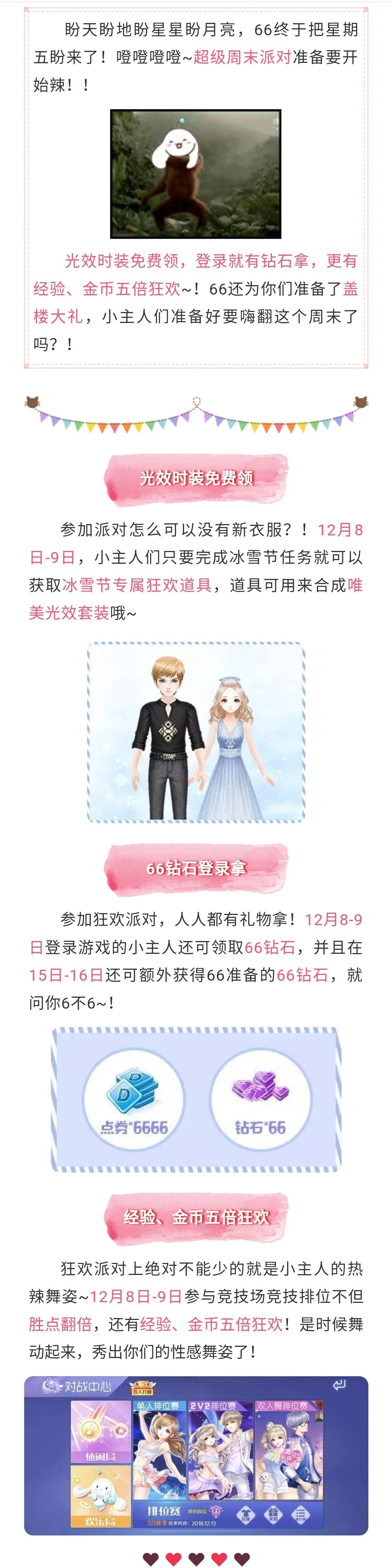 今天66一上线,就收到了星瞳姐姐的约会邀请~嘿嘿,嫉妒啵? 约会回归,还有一大波福利来袭!天辣~这是什么好事儿?!看来浪漫的七夕福利季真的来啦! 约会送时装 七夕福利第一弹——约会回归!浪漫周末当然要来个完美约会~小主人们去约会,66来送礼!约会中达到一定的默契值,就有机会获得痞酷十足的魔术光效时装! 甜蜜周末得好礼 嘿嘿~周末更有惊喜好礼来助力!每天登录游戏就送点券、钻石,还有时装单件免费拿!约