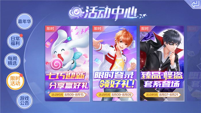 【炫舞秀工厂】新版本太棒了,登陆就有免费套装 大家好,我是蒙蒙,自从更新了QQ炫舞手游7月19日的新版本以后,不仅开放了游乐场的躲猫猫玩法,其他活动也是让我眼花缭乱,多得参加不过来。在新版本中我不仅拿到了丰富的奖励,还获得了免费的精美套装,大家跟我一起来看一下我的收获吧! 在众多活动中,有一个“喜迎七月,连续登陆领好礼”的活动是我非常喜欢的。全新版本更新后,只要每天登陆游戏,都可以领取到对应的奖品