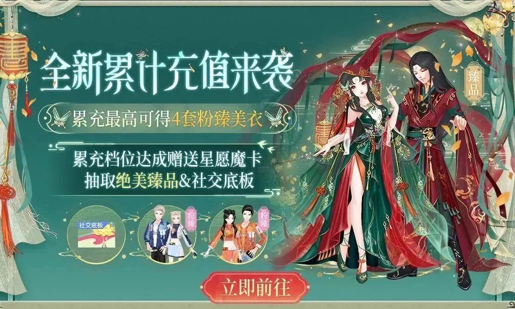 累计充值活动 全新累计充值活动将于明天(7月13日)5:00开启,届时不仅可根据充值金额直接领取档位奖励,而且每充值10元还额外赠送1个魔卡礼盒(随机获得夕梦之玉/灵魂之羽/抽奖券-星愿魔卡/高档头饰/高档背饰)~ 若达到6元、30元、118元、348元档位,可直接领取对应奖励;累充348元可自选粉臻组合装-微笑传递/粉臻组合装-微笑传达,还可重置1次,也就是充值2次348元可得4套粉臻;达到每个