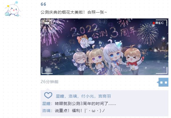 “咔嚓!拍照留念咯~”就在今晚,大师兄举办了一场烟火大会,为即将到来的炫舞公测3周年庆典造势,炫舞家族集体出镜营业!( • ̀ω•́ )✧ 俺可没有光顾着发票圈秀靓照哟,本期66抢先为小主人们曝光部分公测庆典奖励,更多精彩福利之后将陆续释出,前方大型真香现场走起~ 公测3周年嗨皮~!美美的合照奉上,小主人们快把高清原图保存下来~给桌面换个新壁纸! 公测3周年的福利竟然有辣么多,小主人们做好笔记了没