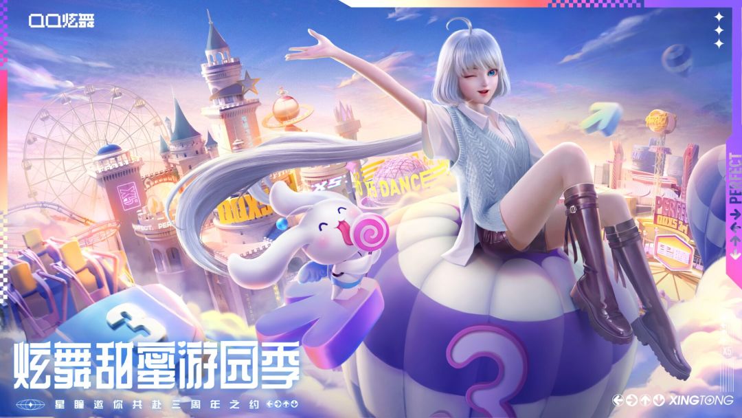 随着3月14日白色情人节的到来,《QQ炫舞手游》迎来了三周年全新版本——甜蜜游园季。三周年庆来临之际,为了感激玩家们的一路陪伴,炫舞不仅开放了全新的地图和玩法,还发放了超级丰富的三周年福利。除此以外,星瞳也为大家送上了情人节礼物——大热单曲《情人》的全新翻跳视频! 据悉,今年《QQ炫舞》还将与中国四大名绣展开联动,带领玩家一同感受非遗文化的魅力。 看点一:首个跨服社区上线,四大乐园玩法升级 在本次