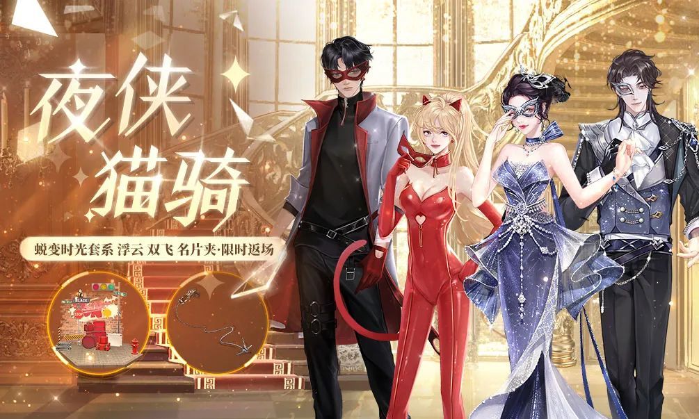 当太阳落下,夜幕渐深,神秘无畏的他们在城市中穿梭,一场好戏即将上演…… 01 夜侠猫骑&瞒天之计限时返场 危险的宴请,迷人的陷阱,都无法让他们停止对珠宝的追逐。明天(8月7日)10:00,超凡套装-夜侠猫骑将返场【藏宝之地-鎏金之庭】,超凡套装-瞒天之计同步返场【藏宝之地-银霜之门】! 瞒天之计特效展示 觥筹交错间,女生娴熟地取走侍应生身上的房卡,男生见她成功得手,借故离开宴席,不慌不忙