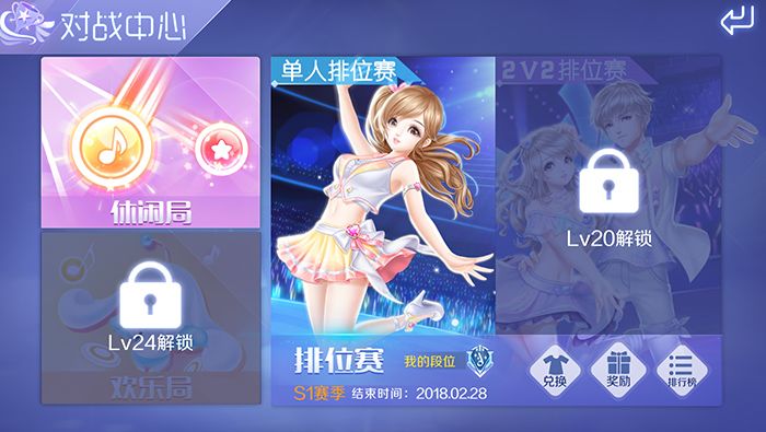 QQ炫舞手游中的新手阶段,玩家主要通过完成事务所挑战来提升等级,同时还可以获得大量的基础服饰。随着玩家等级的不断提高,掌握到越来越的音符类型后,就可以前往对战中心参与排位赛。通过排位赛玩家可以提升段位、解锁头像、同时还可以完成每日的活跃度任务,另外通过积累排位赛竞技币,还可以兑换丰富的服饰、道具奖励。 QQ炫舞手游排位赛在对战中心中,排位赛分为单人排位赛、双人排位赛两种,玩家可以根据实际情况来选择