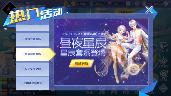 CP情侣装再秀浪漫 昼夜星辰套系唯美登场 昼为光,夜为暗;光明代表着温暖与希望,黑暗拥有者广阔与神秘。黑夜与白昼从来都是不可分离的,黑夜无论如何漫长,白昼总会到来。在QQ炫舞手游中,也为大家上架了极具特色的“昼夜星辰”情侣套系。下面,我们就一起来看看这套情侣光效套系该如何获取吧! 玩家只需要在5月31日至6月27日之间登录QQ炫舞手游商城,就可以看到“星辰礼盒”情侣套装。最重要的是,“星辰礼盒”原