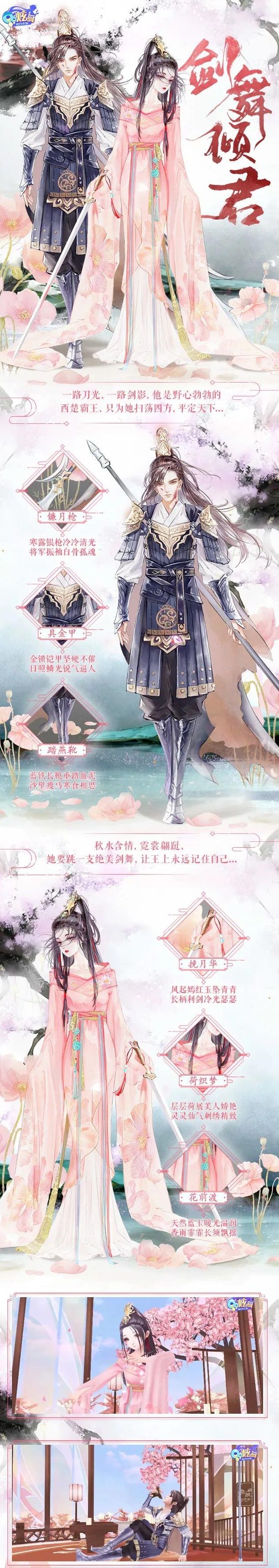 佳客赏春色 鼓上舞一曲欢欣 携手饮过脉脉春风 耀舞风华 夜色撩人,她在鼓上耀舞,回眸倾城一笑~ 他奏响鼓声,一把圆月匕首在手中玩得出神入化~ 情意温烫 相视一笑,他们默契地将手中匕首抛出~ 在夜空照耀下,他们向对方靠近,落下一吻~ 唐城韵味 盛世道不尽红尘巍巍 丹绸难却窈窈风华 纸短情长,纷扬诉秋波 流光京华 他正在书案前作画,一把匕首飞驰而来,他掀起画卷将其挡住… 小扇扑流萤,她巧笑嫣然,蝶舞翩