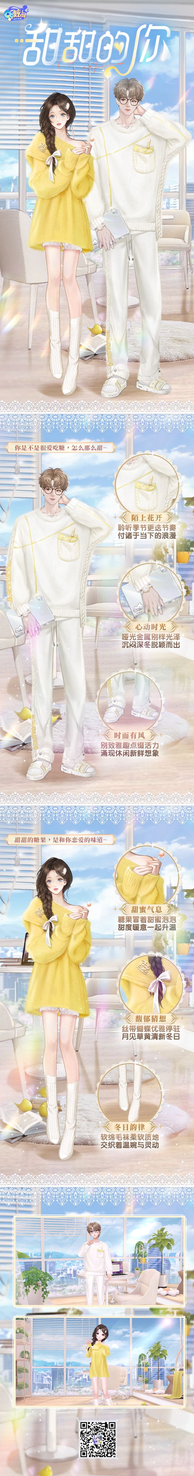 臻品特刊 甜甜蜜蜜 想和你手牵手,肩并肩~ 一起看尽世间美景, 在温柔的岁月里相伴。 岁月浪漫 在温柔的时光中相伴,安静的早晨,金色的阳光,满满活力的少女,好似构成了最美的画卷~ 工作了一个早上,活动活动肩膀,他将桌案旁的棒棒糖拿起,甜甜的味道在口中散开。 落花飘散 面对繁重的工作,他的思路有了片刻的凝滞,而她则趁着这个空隙将糖放到他的面前...... “你不是忙得没空理我嘛?”女孩脸上挂笑,甜甜