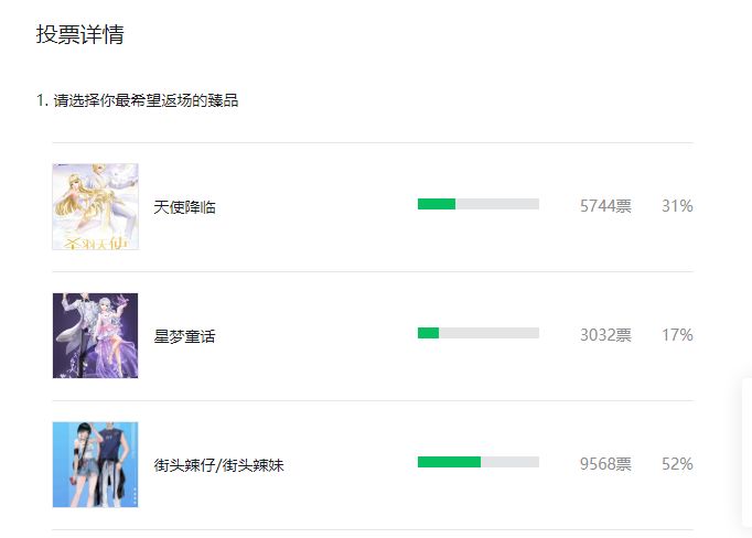 昨天66带来全新玩法——转转金币的消息后,很多小主人都揪着66的小翅膀让交出更多五周年庆的消息! 作为小主人的贴心小棉袄,66当然马不蹄停地搬来了第2弹爆料,快点下滑查看详细内容叭! 01 历史臻品返场票选结果出炉 在小主人的热情参与下,周年庆历史臻品时装票选活动圆满结束啦~街头辣妹/街头辣仔以9568的票数最终获得返场机会! ▲投票结果公布 从3月24日5:00开始,可使用乐梦币在炫梦商店