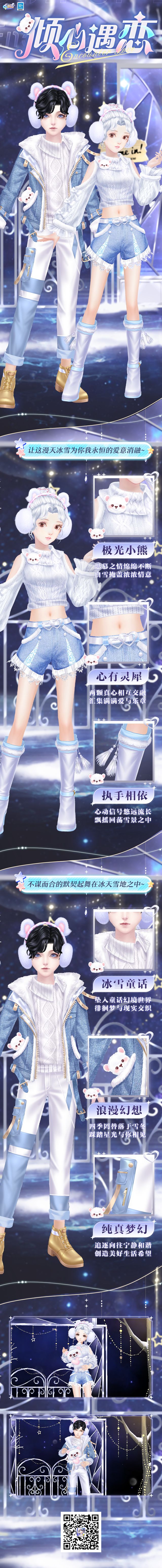 臻品特刊 浪漫的月光之下 他们借风中翩翩起舞的雪花 表达着心底的爱意 梦星雪落 流星绽放在美丽的夜色中,女孩抱着玩偶来回踱步,等待着恋人。 亮光璀璨而耀目,男孩心底的雀跃难抑,期盼着心爱之人的到来。 白色恋歌 而后,他们相遇在约定地点,二人都心有灵犀地将礼物藏于身后。 下一秒,他们同时将礼物拿出,相同的礼物令他们的脸颊泛起嫣红。 获取方式 臻品套装-倾心遇恋,将在明天(12月20日
