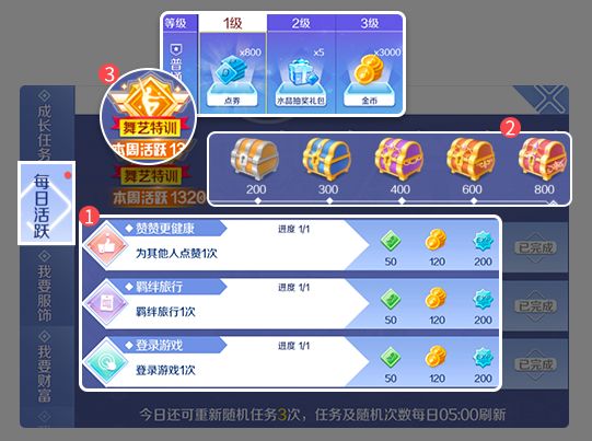 小主人们心心念念的商城免券购活动即将来咯,听说有人还没攒够点券?别担心,近日66收到了小主人投稿的各渠道获得点券的攻略,快来一起看看吧! 由于点券获得的方式数不胜数,小主人细心地分为游戏内和游戏外两项给大家介绍哦~ 以下内容为玩家投稿 仅供参考,不代表官方立场 舞者の音乐世界 任务 推荐指数:★★★★★ 简要说明:完成每日活跃任务,不仅可以获得【每日奖励】,达到一定活跃后还可以获得【周活跃宝箱】奖