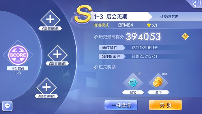 QQ炫舞手游泡泡模式第一章邂逅中共有5首歌,后会无期是其中的第3首歌,这首歌的音符同样非常简单,非常适合泡泡模式新手玩家入门。而这首歌的难点在于弯曲的滑动音符,相比之前垂直横按的滑动音符来说,操作上会难上一些。 后会无期这首歌是徐良、汪苏泷合唱的一首歌,并不是邓紫棋唱的那一首,相比泡泡模式的上一首歌浪漫惊喜,这首歌的S评价要求高了3万多分。这里技能选择得分提高,并在完成ALL COMBO的情况下最
