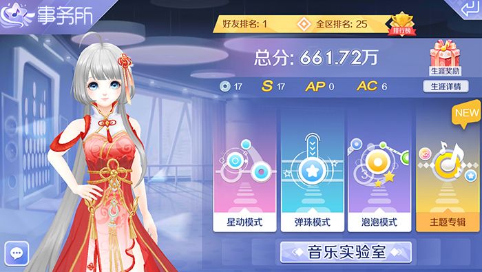 QQ炫舞手游事务所非常重要,作为新手首先接触的玩法,玩家不仅可以在事务所中获得服饰奖励,同时还可以在主题专辑中,挑战不同类型的音乐合集。当玩家等级达到11级后,解锁音乐实验室之后玩家还可以练习更高难度的歌曲,从而不断提升自己的技术水平。 QQ炫舞手游事务所包括了星动模式、弹珠模式、泡泡模式三种,玩家可以通过章节形式挑战歌曲。随着玩家的等级提升,玩家解锁主题专辑功能后,可以在其中挑战QQ炫舞经典的四