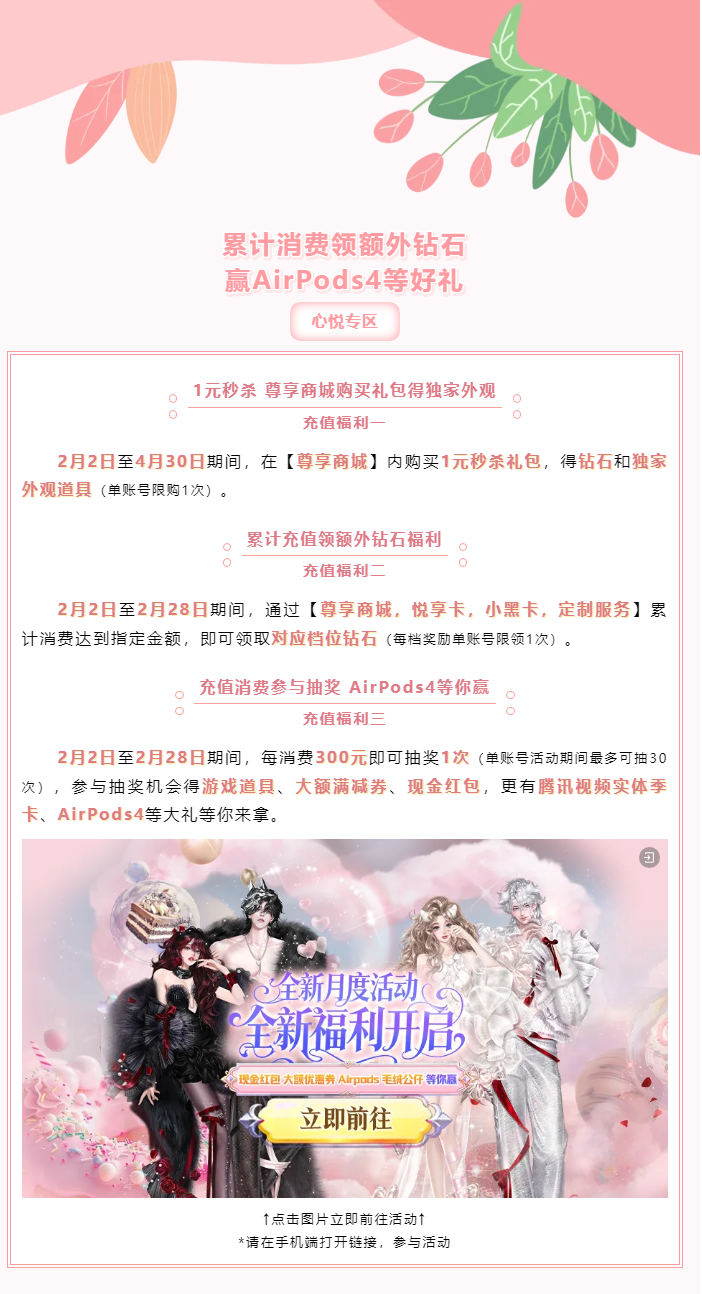 【心悦专区】累计消费领额外钻石,赢AirPods4等好礼