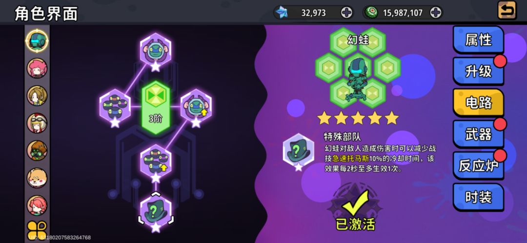 ①阵容 主c 骇客(满星起步)因为骇客满星暴击后概率回蓝,在配合骇客被动蓝条满后攻击有概率百分比暴击六次,实现无限技能 蓝条聚能辅助 幻蛙 回血辅助 依娃(火奶)淘淘(毒奶) 火奶奶量大,还有加伤/毒奶能回能量,推荐骇客没满星使用 ②反应炉搭配 骇客推荐4件狗与尾巴反应炉(套装属性加暴伤百分比)➕2件开水壶反应炉(套装属性加攻击百分比) 幻蛙推荐4件程序猿反应炉(套装属性加HP上限百分比)➕2