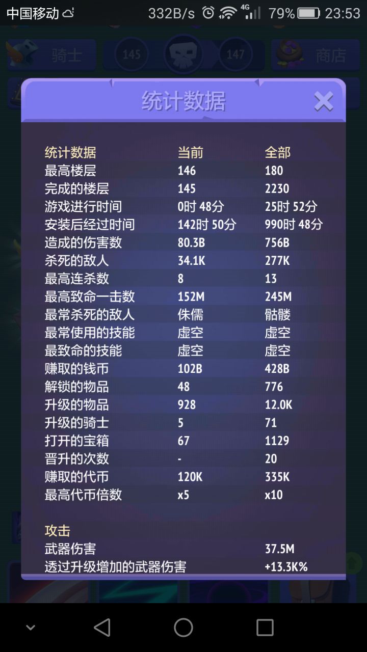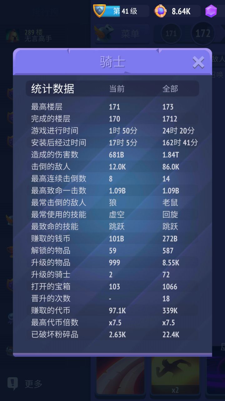 只想看攻略不想听楼主说废话的小伙伴们可以看分割线以下的东西嗷~┗|`O′|┛楼主游玩时间可能在各位大佬中不算长的,但是扪心自问没有开作弊没有修改,纯正手打,一点一点一天一天的积累,才有了现在的成果。截至写攻略时,等级45 64%物品解锁 90%成就 71购买升级 180的巅峰楼层 游戏内计时25小时52分。其他数据可以看截图。开头说点没啥用的:作为一款放置类手游,这货其实很不像放置类。每四层