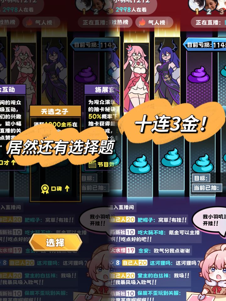 问:你好,主播,我想跟你了解一下,为什么你抽卡一直可以这么的欧❓答:你以为我玩的是抽卡❓戳,我玩的是阳寿,每天见阎王爷已经成为我的日常问:......👇🏻有点正经的不正经介绍👇🏻✨游戏名:抽卡主播(别名:阳寿生死局/我不是阎王爷等)✅游戏特点:很好的模拟出当下很火的抽卡主播这一话题,同时游戏中带有的随机性和养成玩法都别具一格,另外游戏中的许多弹幕设计,都让整个游戏有着活起来的感觉,可以