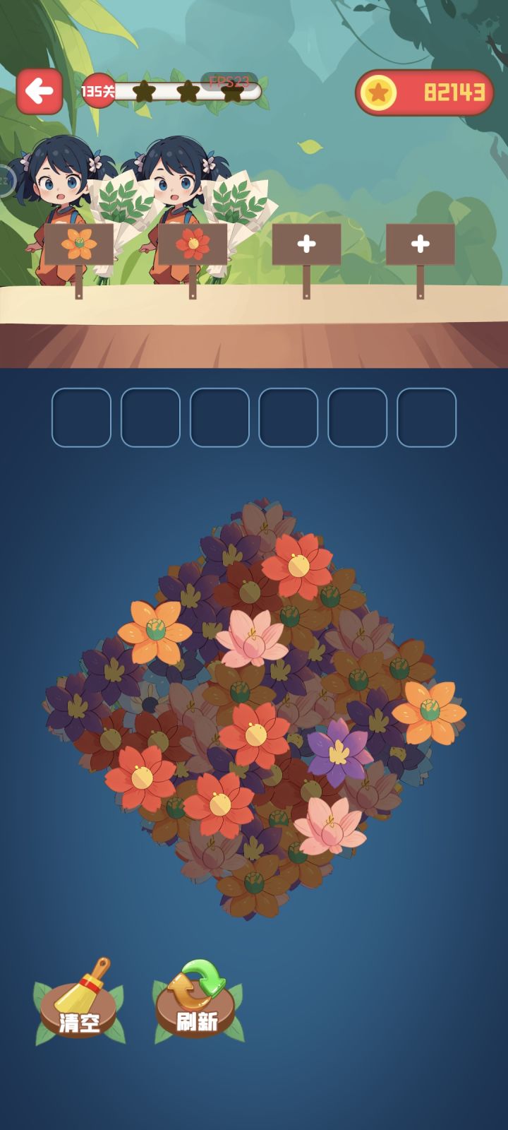 每一关最后一组一定是浅红色的花,而且每关的图形都是循环着来的,难度也是不变的,没有闯关的乐趣,也就界面干净比其他的游戏好
