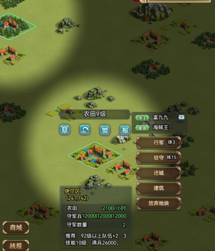 这个游戏不论是挑战 BOSS、城池攻打、还是玩家对战,需要的都是兵,征兵的基础是资源,1 兵=5 木头、5 铁矿、10 粮食,所以我们首先要做的是占领资源地。占领方法:点击部队,上阵 3 圣灵组成阵容,并且分配兵力,然后点击自己想要进攻的资源地。占领顺序推荐:资源配比:由于征兵机制设定,资源需进行 1:1:2 进行攻打,以满足征兵需求,另外升级城内建筑需要石料,点火御寒需要木材,所以最终配比