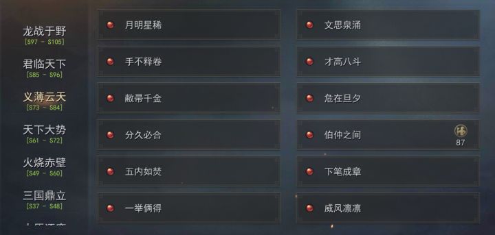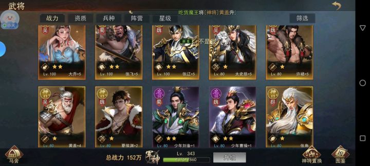 这是以攻城刷资源为核心的武将培养游戏,20天左右一个赛季,每个赛季地图不一样。大家好,我是一战功成的秦天帝,目前零氪,玩了6个赛季,玩的小号流,哈哈,每个号一个流派,用下来的感觉,骑兵流1-3赛季最好用,成型快,输出高,但缺点是高资骑兵出的慢且不强,听说很猛的公孙瓒到6赛季还没出,只有18资的关羽还能用,而且后面很多将都克骑兵。弓兵流前期略弱,除了有吕布的大佬,4赛季出祝融之后祝融弓兵秒杀流崛