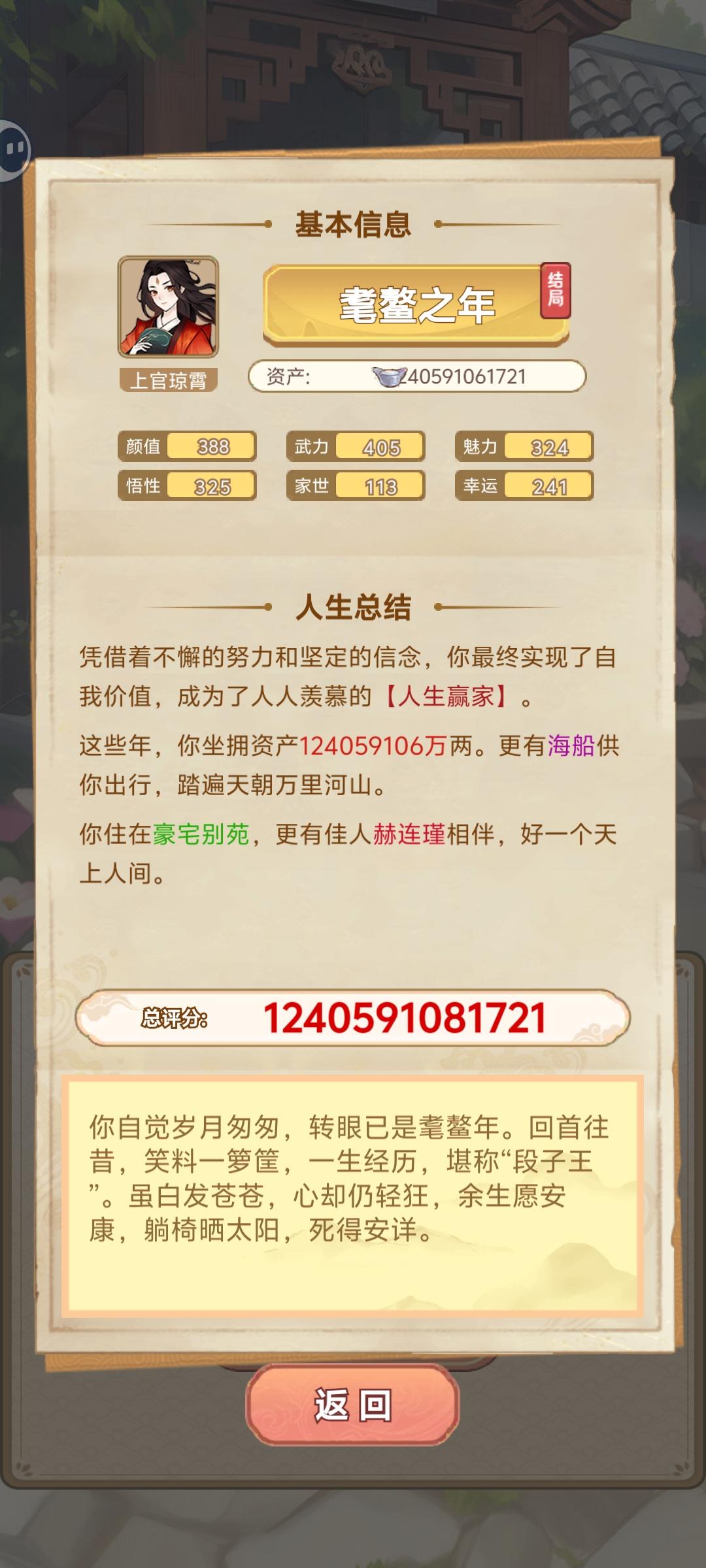 3.事件都是正面加分,而且数值都挺高,且没有扣分的随机性。玩的很爽,但是没有游戏性。我甚至不知道我这么高的数值为了啥?毕竟故事线其实很固定,我的努力不影响我的未来。