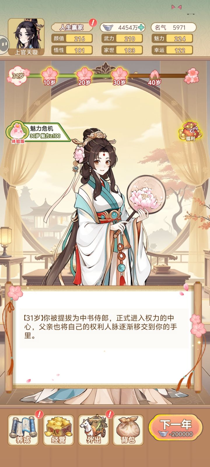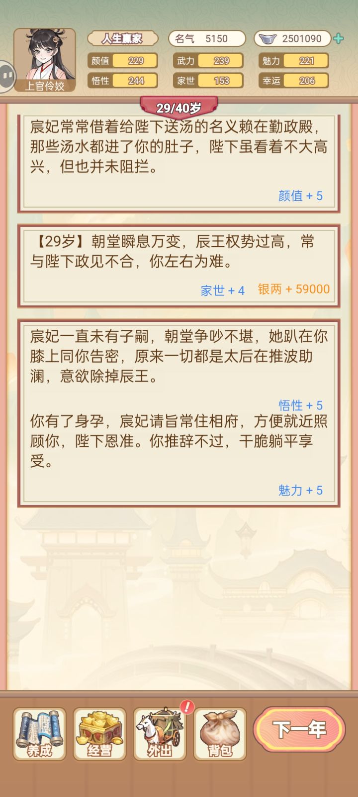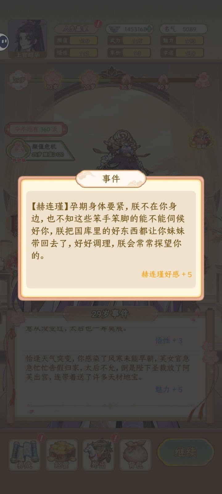 我也是诶,刷皇帝好感度这结局好胃疼,妹妹嫁给皇帝,然后完全当摆设。姐姐都嫁人了,皇帝还守节?要不要这么坑自家人