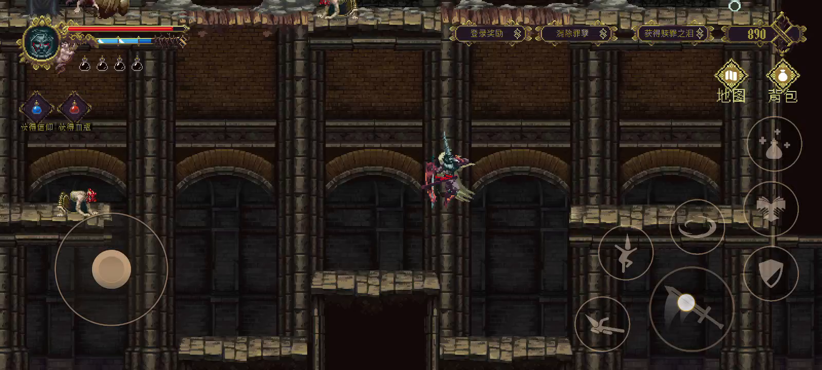 首先游戏有碰撞伤害就很离谱,碰撞扣血也高,才一周目数值伤害方面不是一般的高 一章图祭坛少的可怜,导致跑图跳跳乐更加恶心玩家,跳跳乐是类恶魔城一贯的特色但是跳跳乐极限位置给你放些怪搞你,而且有碰撞伤害,很多怪一个比一个恶心伤害还离谱 别人魂类死亡掉钱这b扣蓝条上限,如果你跳跳乐被怪打死多了,那么恭喜你