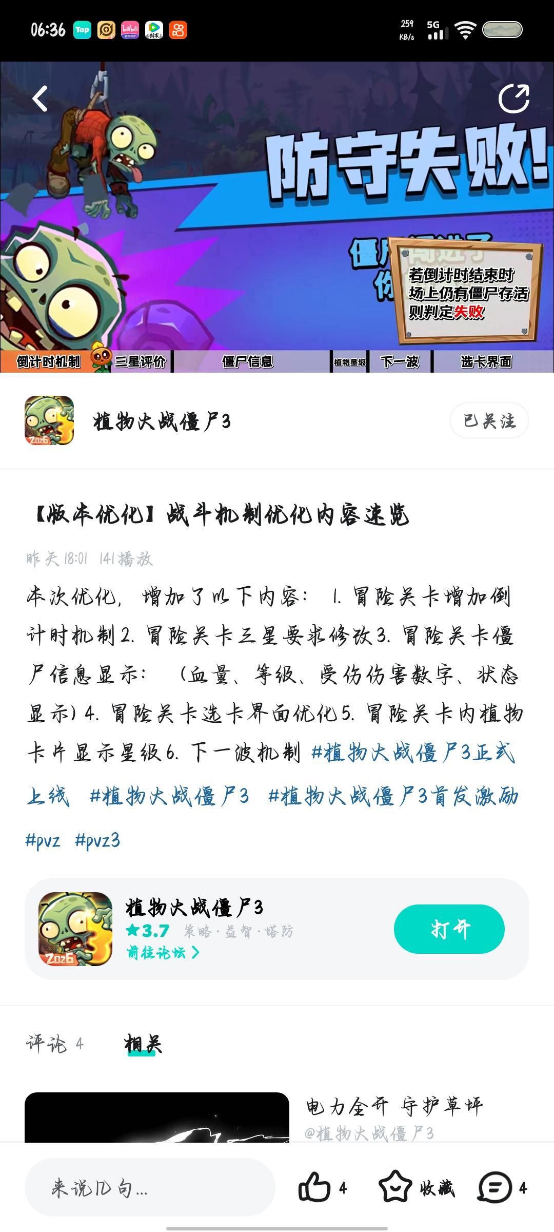 本次优化,增加了以下内容: 1.关卡僵尸信息预览 2.玉米卷位置优化 3.玉米卷使用提示 4.调整植物养成页签顺序 5.优化获取植物教学界面 6.新增冒险关卡记录&全服公告 #植物大战僵尸3正式上线 #植物大战僵尸3 #植物大战僵尸3首发激励 #pvz #pvz3