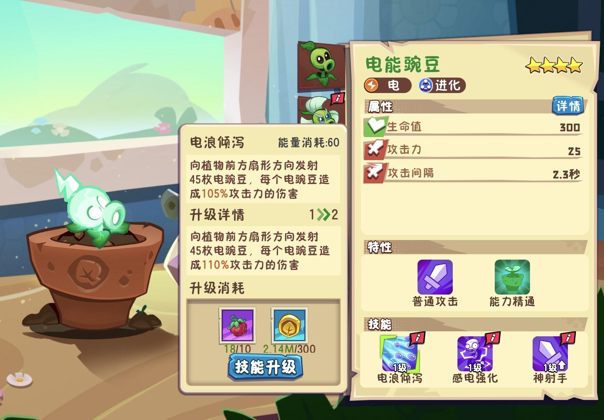 1、电豌豆,攻击力太低了,大招弱化版电大哥大招??2、电芦苇,进化后攻击力还低了2点难绷;3、紫/橙卡植物升星材料分开,肥料一次是10紫20蓝材料,紫卡培养更方便了,可算是干了件人事