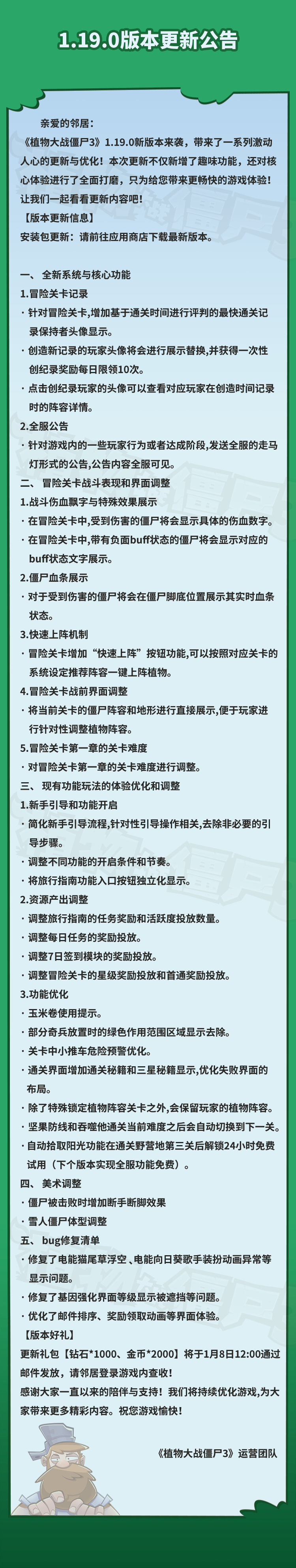 本次优化,增加了以下内容: 1.关卡僵尸信息预览 2.玉米卷位置优化 3.玉米卷使用提示 4.调整植物养成页签顺序 5.优化获取植物教学界面 6.新增冒险关卡记录&全服公告 #植物大战僵尸3正式上线 #植物大战僵尸3 #植物大战僵尸3首发激励 #pvz #pvz3