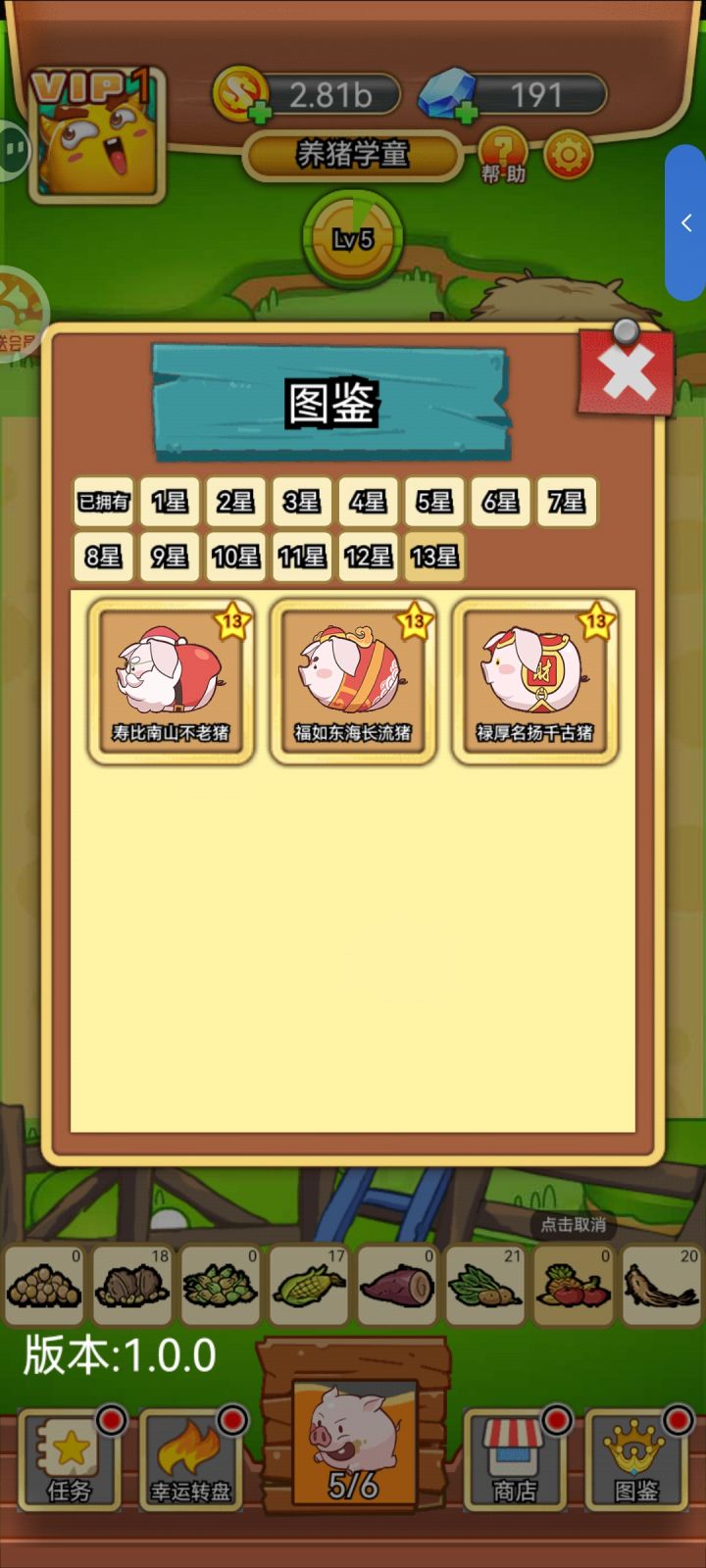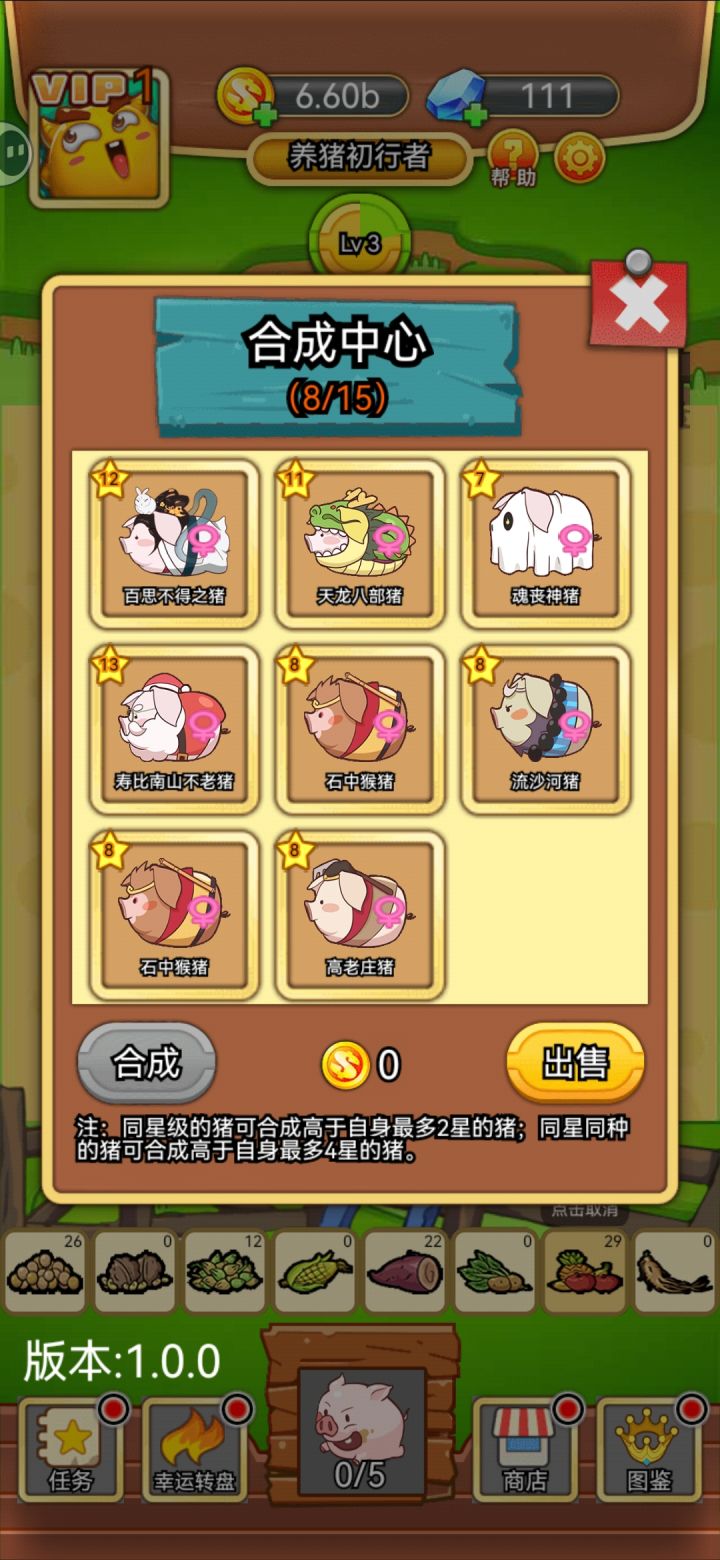 满图鉴了。这个游戏和养猪大亨很像,这个是速通版,合成只要几秒,养猪大亨后面要2.3小时