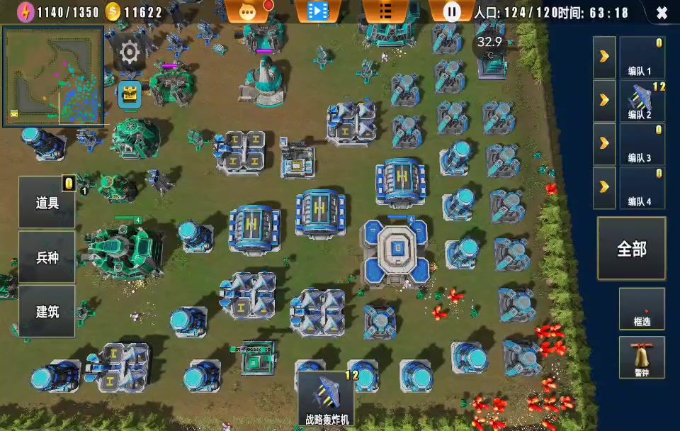 开局由于我不是抗压位置就没建机枪塔(对面有兽人一定要建二个机枪塔),开局快速出一级坦克抢资源点、能打进去就压对面经济。 一般18~22个矿工升级二本,矿工模式一本一个电就够用了不要多建浪费钱。 二本升到时留400块钱升矿工到二级和研究二级坦克,二本最好建一个兵营出铁剑士(铁剑士能坑大量伤害)二个坦克工厂、看情况出特殊工厂(二本只要是出防空车)32个矿工升级二级。 到三本时先升级矿工到三级、研究三级