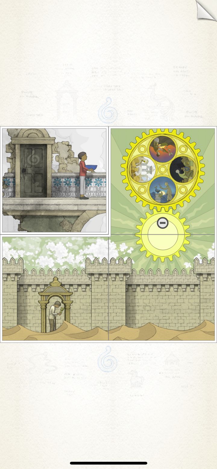 就冲着这画风也得打满分,神秘复古的画风,在画面的意外重合下,随着沙漏的定格,斗转星移,场景随之改变,神秘淡淡的音乐在一旁默默衬托着剧情的发展,玩家眼底的那个画中世界徐徐向我们展开......