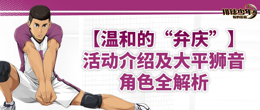 🌟【温和的“弁庆”】活动即将开始,新球员「大平狮音(WS)」也将与我们见面! ✨【温和的“弁庆”】开放时间为12月26日~1月22日,共28天。 ✨每日参与【温和的“弁庆”】活动可以获得招募徽章,在【温和的“弁庆”】卡池招募SSR球员「大平狮音(WS)」。 ✨期间完成每日任务,活动结束前最多可免费获得135次招募机会! 💡大平狮音是非常适合白鸟泽队伍的一名辅助球员,建议大家酌情抽取。 🎮点击配图带