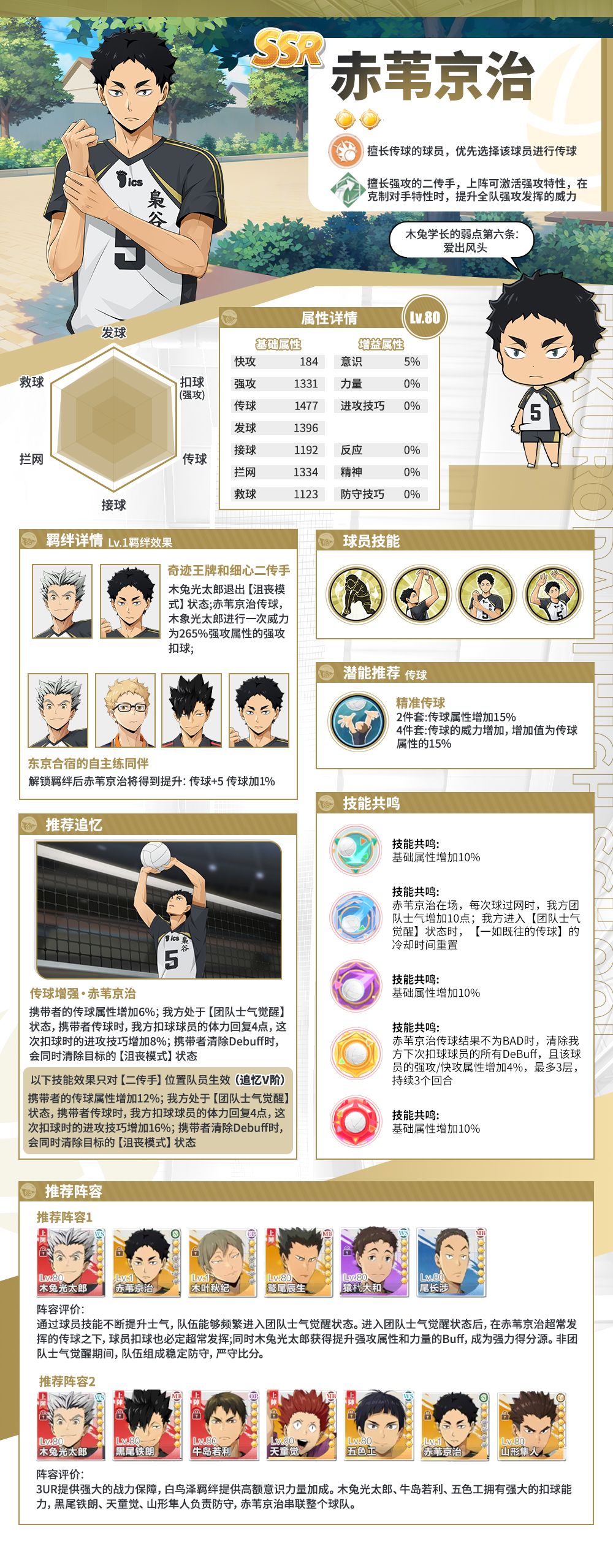 🏐「赤苇京治」定位二传手(S)。 🏐擅长传球与强攻的二传手,上阵可激活强攻特性,在克制对手特性时,提升全队强攻发挥的威力。 🏐潜能推荐:传球。 ⭐更多「赤苇京治」养成详情,阵容攻略欢迎点击配图查阅。 #排球少年 #排球少年手游 #排球少年新的征程 #排球少年1025新的征程 #一起来玩排球手游