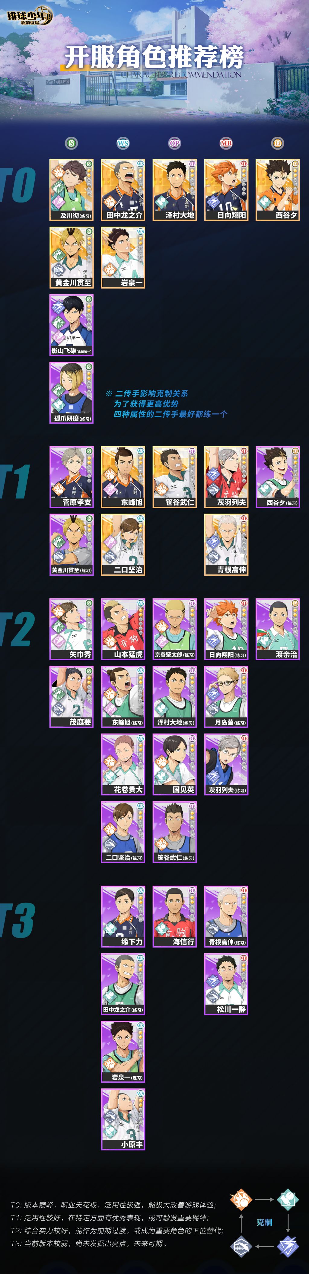首先我必须先跟大家灌输一个概念,级别越高的角色培养的优先级就会越高。也就是说SSR一定要优先培养,哪怕是不同学校的也没有关系。因为SSR的基础盘确实比SR优秀得多。但如果SR拥有高共鸣,那就另当别论,因为经过测试共10以上的SR球员在属性部分与共4的SSR球员不相上下,但是技能加成和实用方面会远远超过SSR。 接下来我将逐个分析各个学校值得培养SR的角色。 那我们先从乌野开始。 乌野的守护神——西
