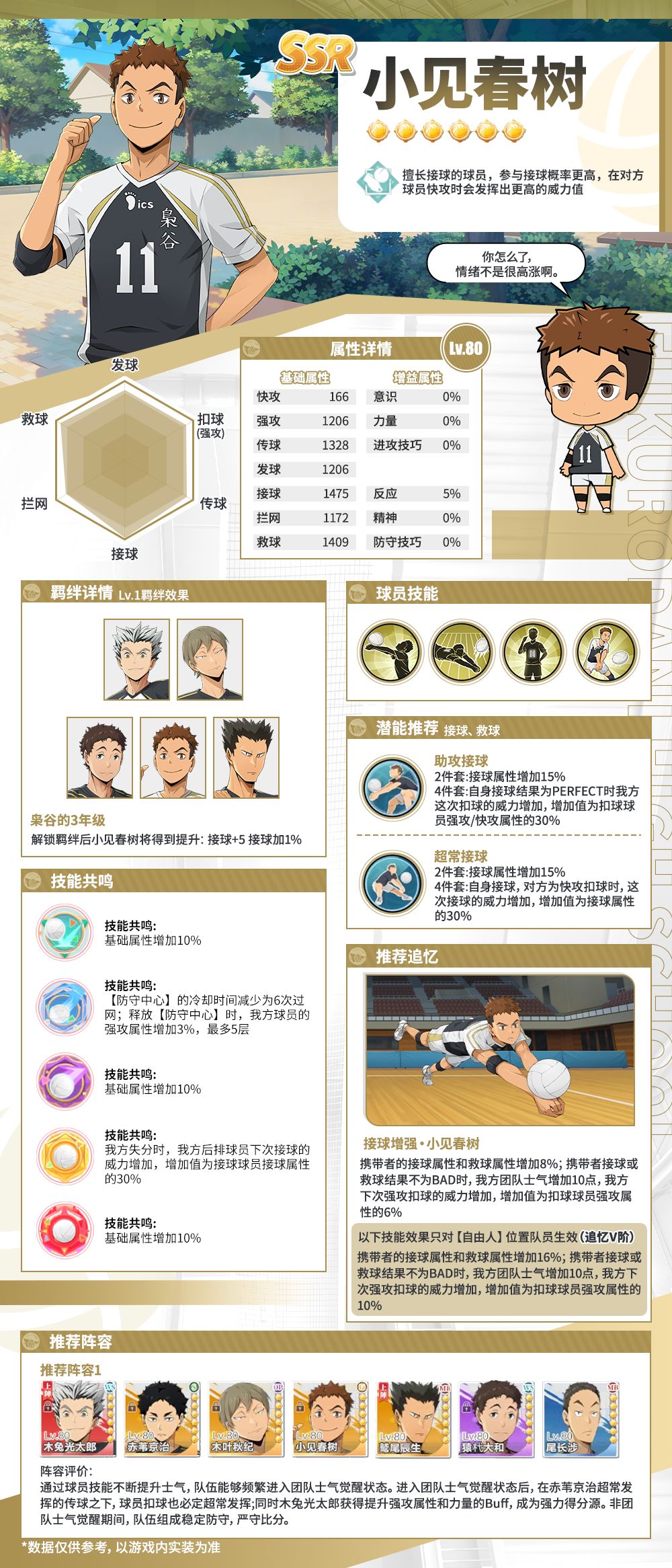 🏐「小见春树」定位自由人(Li)。 🏐擅长接球的自由人,参与接球概率更高,在对方球员快攻时会发挥出更高的威力值。 🏐潜能推荐:接球,救球。 ⭐更多「小见春树」养成详情,阵容攻略欢迎点击配图查阅。 #排球少年 #排球少年手游 #排球少年新的征程 #排球少年1025新的征程 #一起来玩排球手游