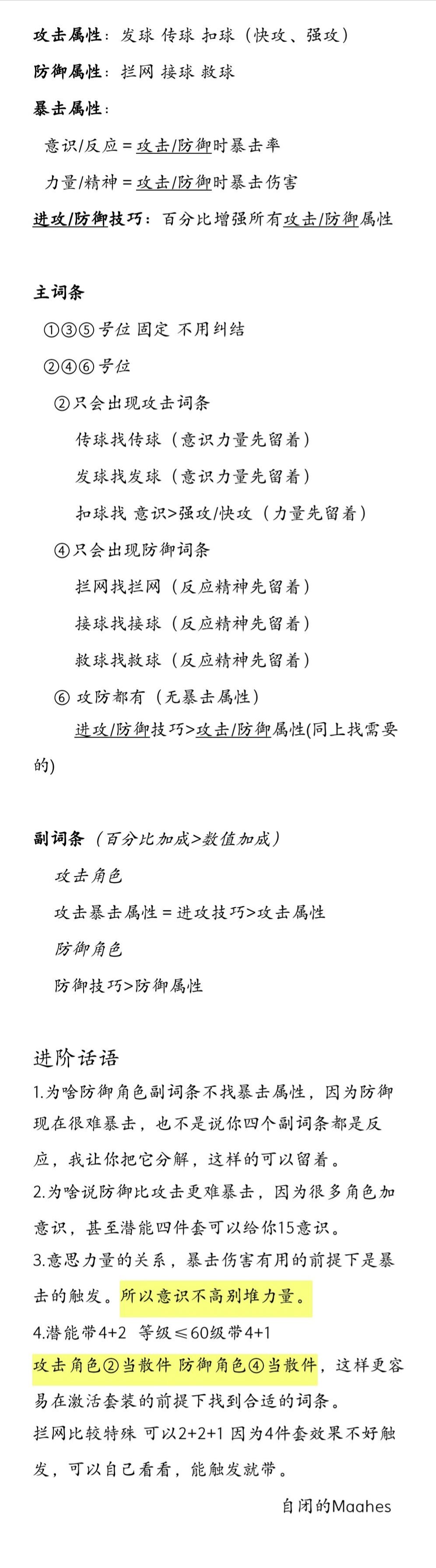 “完美饭团的秘诀?把每一粒米都摆在它该在的位置。” 当宫治在《排球少年》中说出这句话时,他已将料理的极致追求刻入赛场基因。宫治在游戏内是比较稀缺的OP位,所以他的直接对手是牛岛。和牛岛高暴击高爆伤不同,宫治开场即会把意识(暴击率)转化成进攻技巧,加上技能组自带的进攻技巧加成,宫治的进攻技巧会叠的非常高。这和需要赌概率的暴击不一样,高属性就给宫治带来了很高的下限。 但是这就说明宫治的上限很低了吗