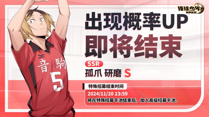SSR球员「孤爪研磨(S)」招募概率UP即将截止
