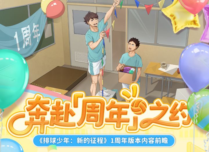 🌟 《排球少年:新的征程》一周年版本内容更新,庆典赠礼加码,累计登录、参与活动还可领取海量招募券!📆时间:10月23日敬请期待~🎆 庆典赠礼、一周年特别签到福利、一周年蛋糕、首充活动重置、「享受吧!校园庆典!」活动即将开启!🎆 新SP球员「及川彻(校园庆典)」、「岩泉一(校园庆典)」,新限定追忆同步上线;SP球员「菅原孝支(放学后)」、「木兔光太郎(炽热海滨)」复刻,同名卓越追忆一齐登场!🎆