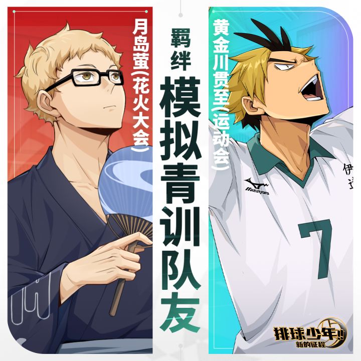 🌟 大个儿新人和新队长二口坚治 & 黄金川贯至(运动会)🏐 效果解锁羁绊后,黄金川贯至(运动会)【拦网】属性提升,二口坚治【拦网】属性提升。🌟 伊达工的二传手黄金川贯至(运动会) & 茂庭要🏐 效果解锁羁绊后,黄金川贯至(运动会)【传球】属性提升,茂庭要【传球】属性提升。🌟 模拟青训队友月岛萤(花火大会) & 黄金川贯至(运动会)🏐 效果触发羁绊后,我方场上有拦网技能的球员的