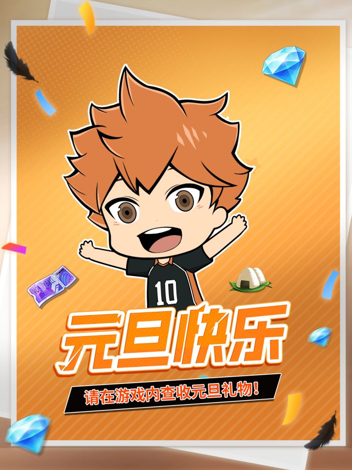 亲爱的玩家们:球网的这边是充满热血与梦想的我们,球网的那边,是新的目标!随着2025年元旦到来,团队感激每一位玩家的陪伴与支持!我们将在1月1日为大家送上元旦礼物,内含:钻石*500、高级招募券*2、体力*200。领取有效期7天,请及时点击查收~愿这小小的心意伴随您在《排球少年:新的征程》里继续畅快遨游,尽享乐趣。最后,祝愿各位玩家元旦快乐,新的一年在这排球的热血之旅上,解锁更多的球员,