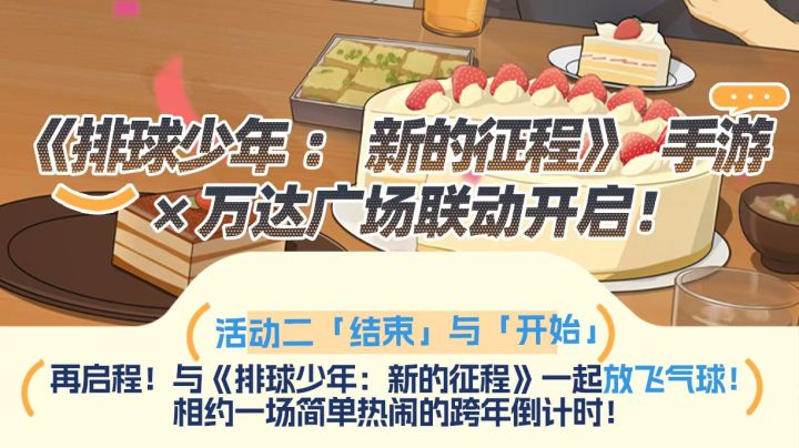《排球少年:新的征程》×万达广场本次联动活动第二弹即将开启!✨「结束」与「开始」。📆活动时间:2024年12月31日当天🎁根据规则参与活动,免费领取游戏定制「铝膜气球」、「橡胶气球」、「单人立牌」精美周边。周边发放均为随机角色~✨「王牌」汇合!目前仍在进行中。📆活动时间:持续至2025年1月1日。🏐具体活动规则与地址请点击图片查看,预祝大家都能度过美好的一天!#排球少年 #排球少年手