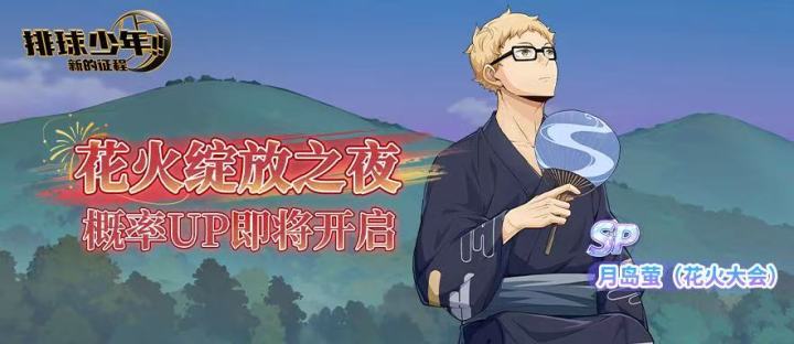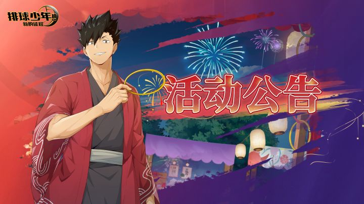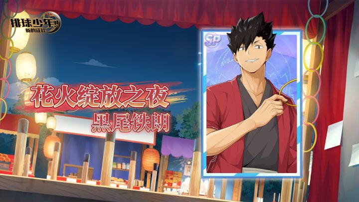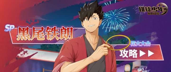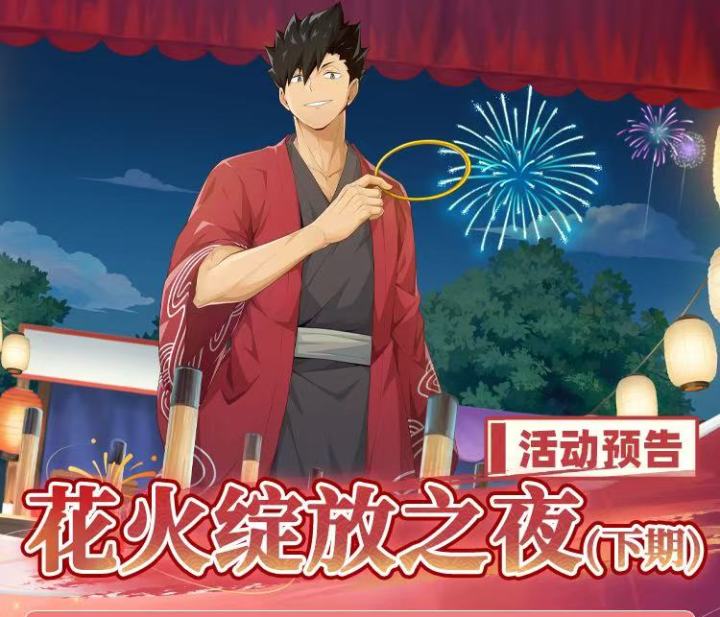 9月11日 ~ 9月24日,全新SP球员「黑尾铁朗-花火大会(MB)」招募概率限时UP!黑尾铁朗(花火大会)主题活动「花火绽放之夜」限时开启,参与可获得黑尾铁朗(Q版花火大会)头像、卓越招募券等丰厚奖励!✨精彩活动内容提炼:1. 全新 SP球员「黑尾铁朗-花火大会(MB)」登场;新卓越追忆「拦网&防守技巧增强 · 黑尾铁朗(花火大会)」上线!2. SP球员「日向翔阳-赏樱(MB)」,卓越追忆